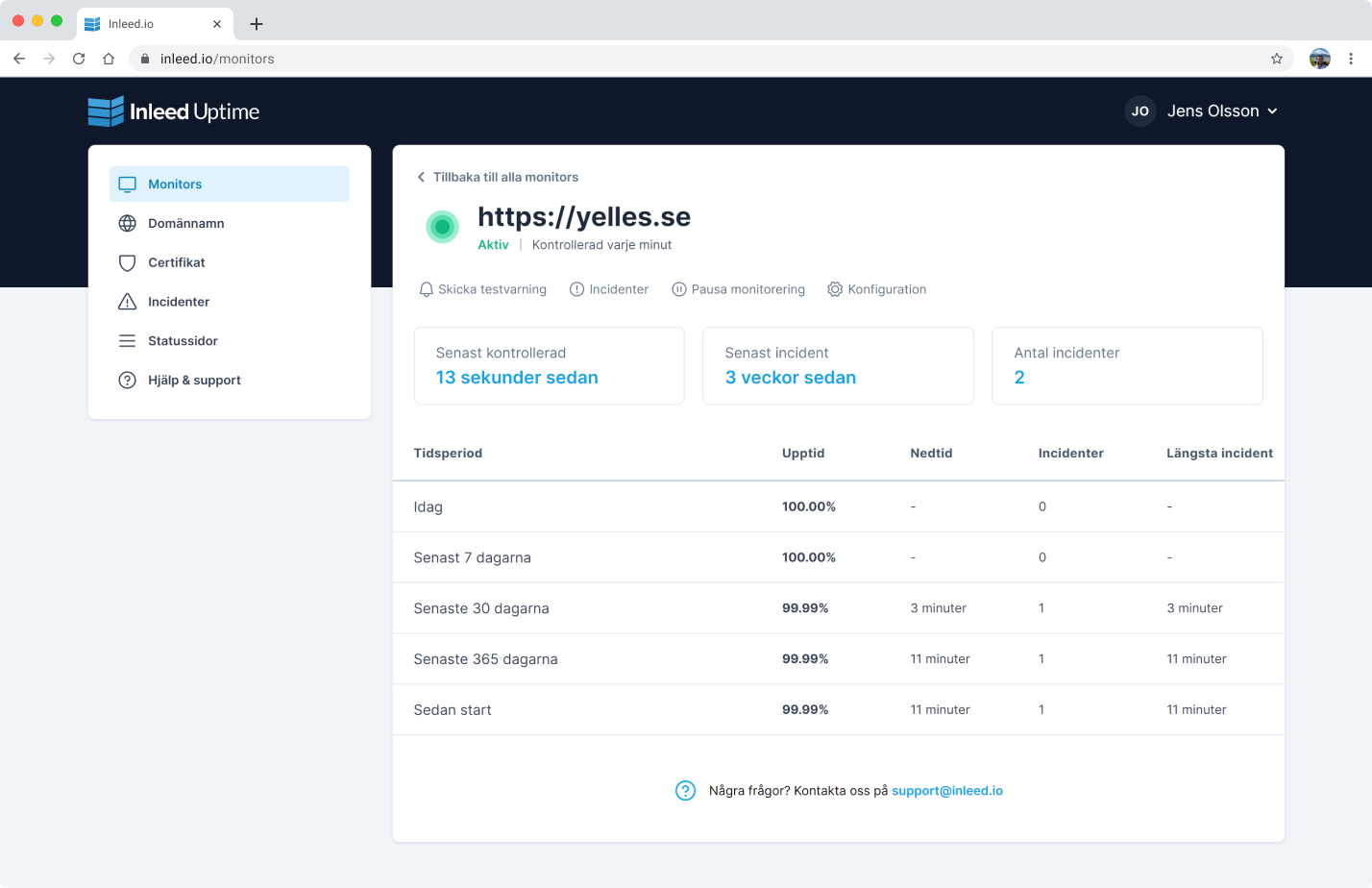 Inleed Uptime är en gratistjänst som erbjuds av Inleed, och kostar ingenting att använda.